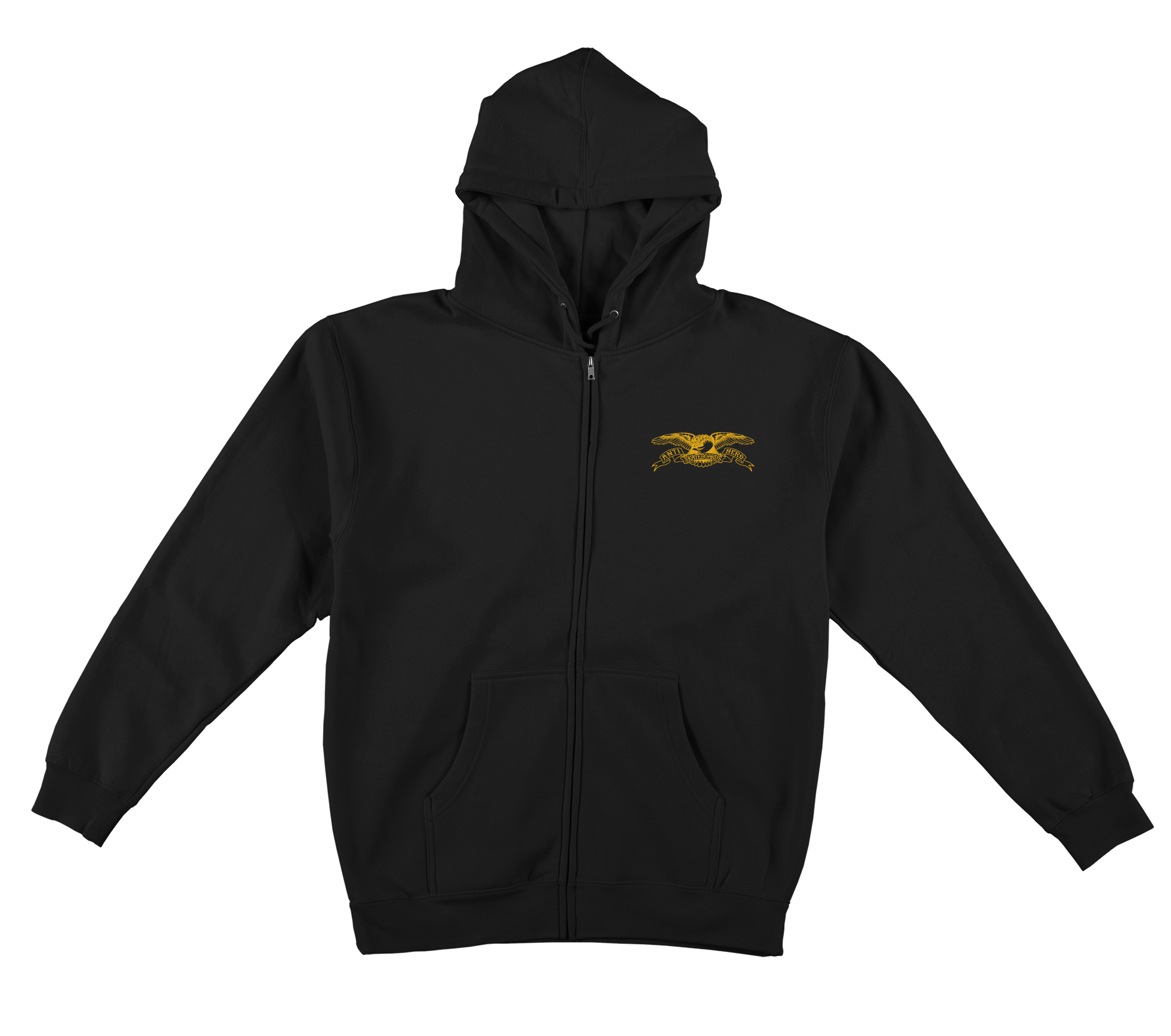 ANTIHERO BASIC EAGLE EMB ZIP HOOD BLACK w/ YELLOW EMBROIDERY
