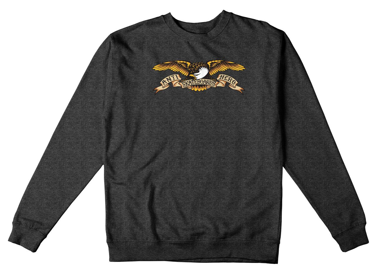ANTIHERO EAGLE HEAVYWEIGHT CREWNECK CHARCOAL HEATHER w/ BLACK MULTI COLOR PRINT