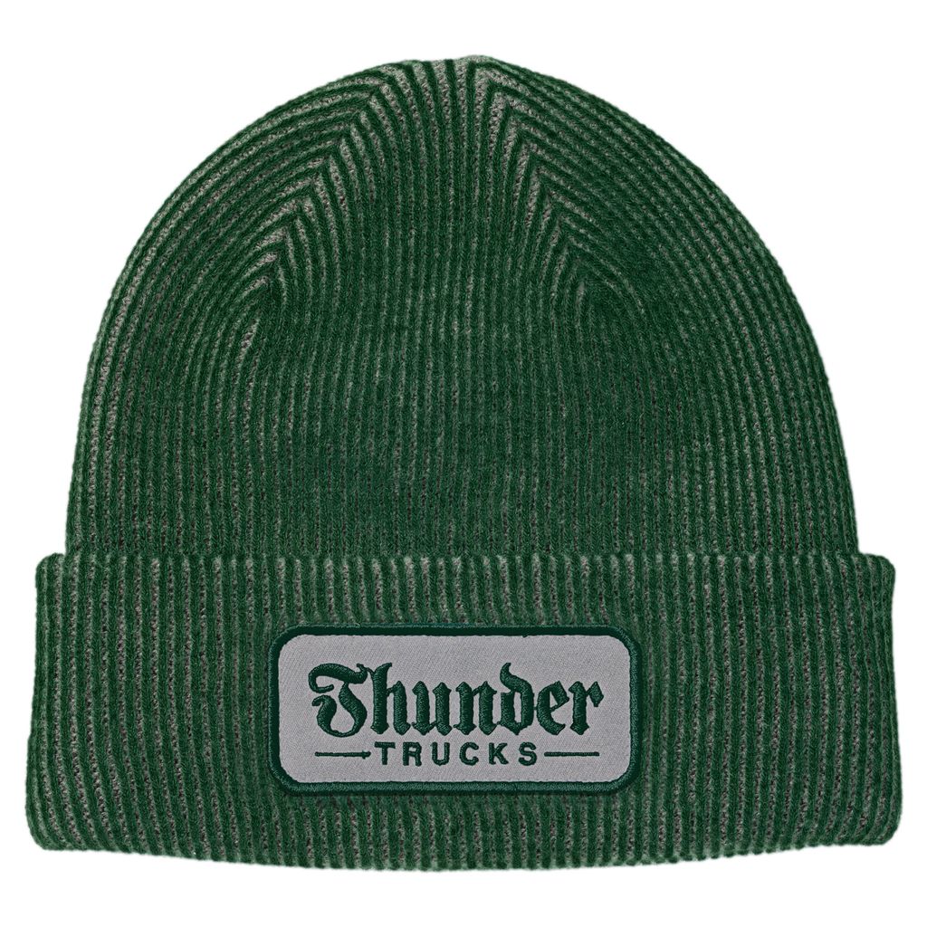 THUNDER SCRIPT PATCH CUFF BEANIE DARK GREEN / CHARCOAL