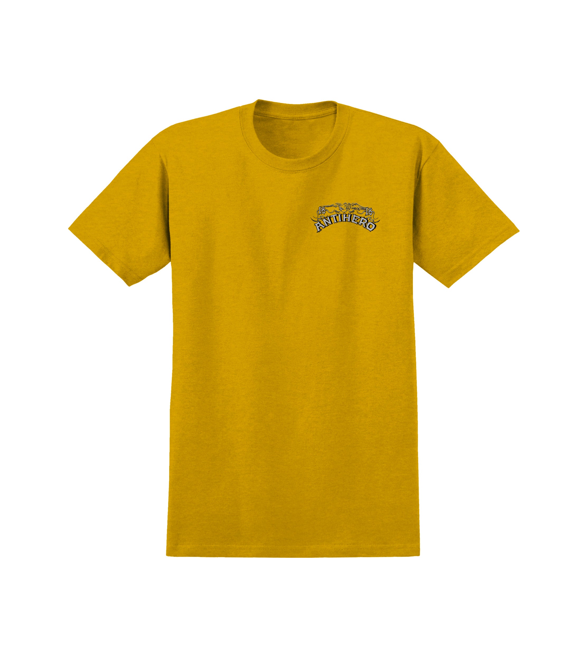 ANTIHERO CUSTOMS TEE HEATHER MUSTARD w/ BLACK & METALLIC SILVER PRINTS