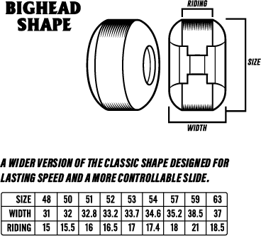 Available in 99 duro Bighead shape; sizes 51 through 56mm.