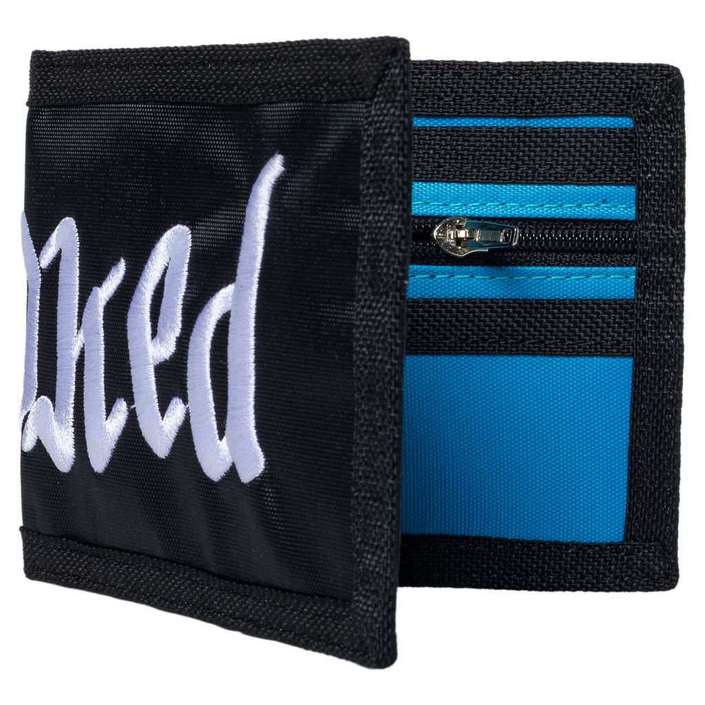 Nylon bi-fold wallet with embroidered and screen printed logos, large currency sleeve, card slots and a zip compartment.