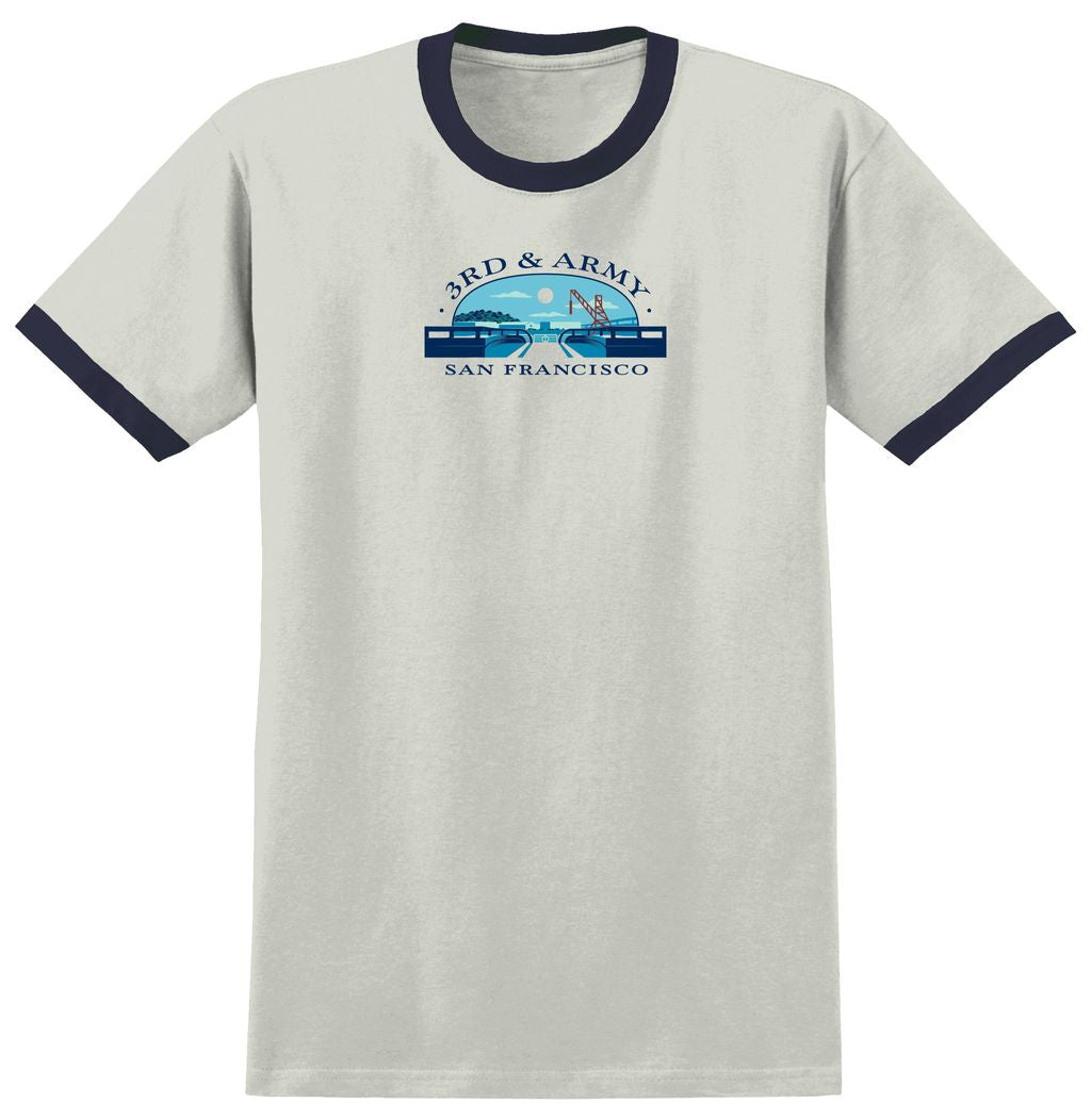 REAL 3RD AND ARMY RINGER TEE NATURAL / MIDNIGHT NAVY w/ MULTI COLOR PRINT