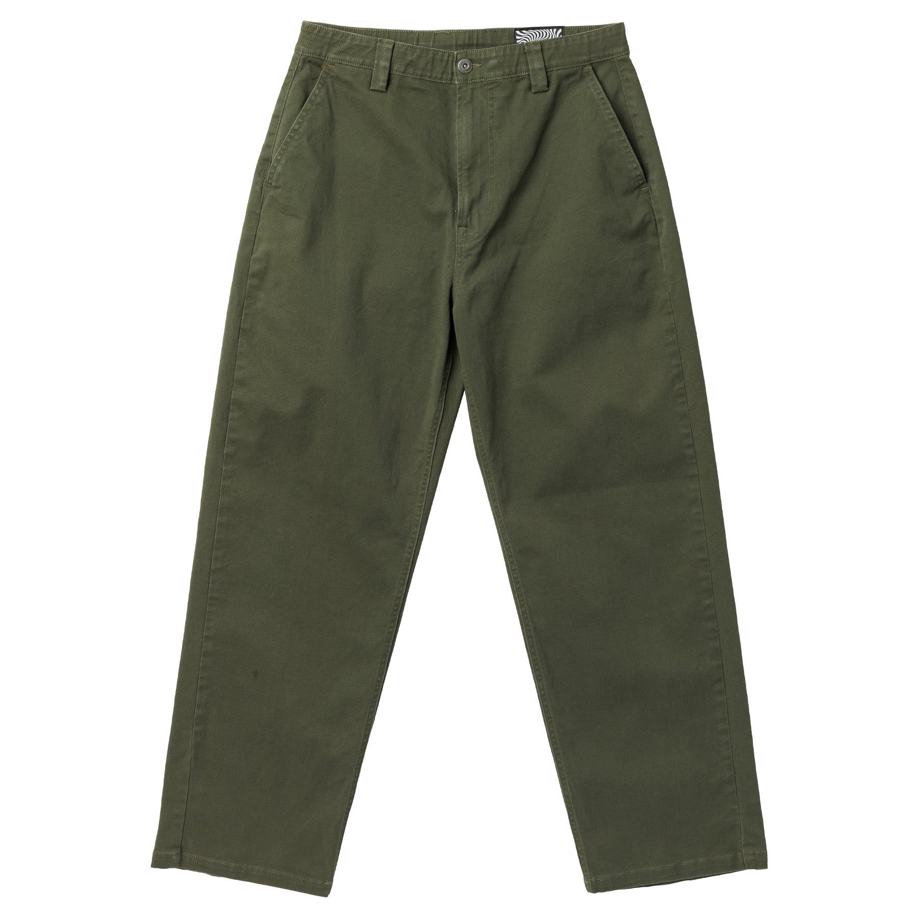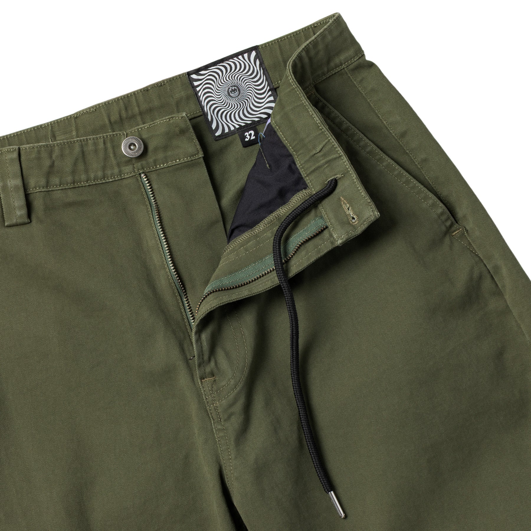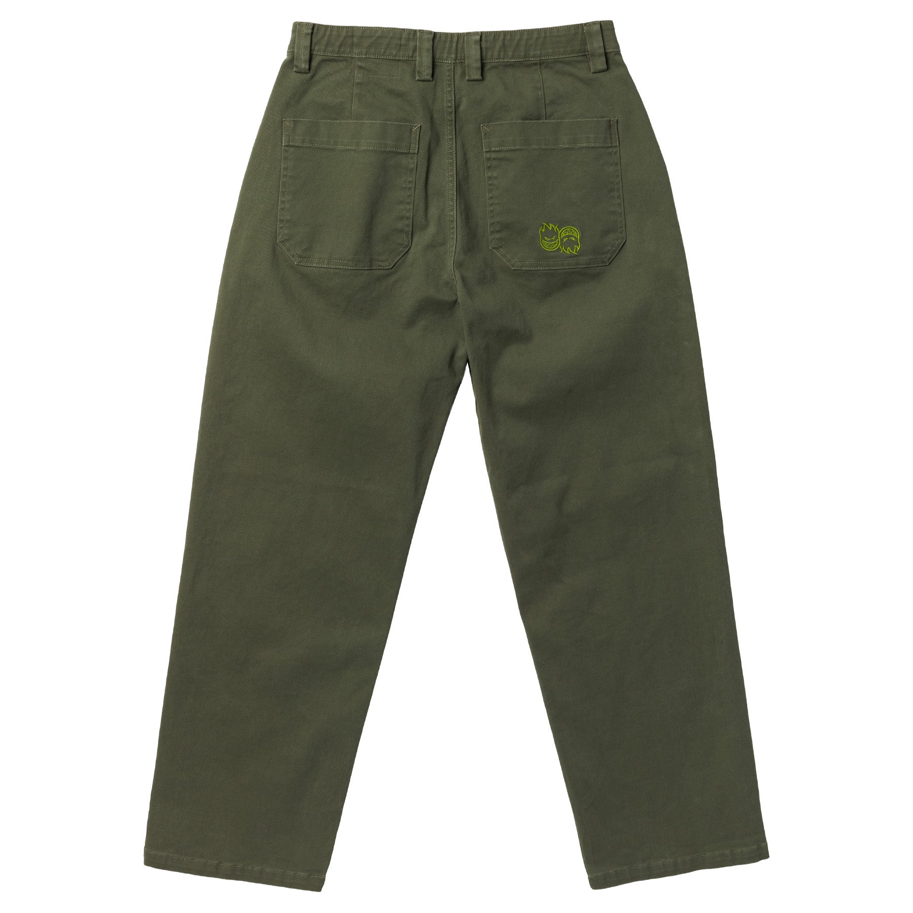 97% cotton / 3% Spandex 11.50 oz. twill pant with elastic waistband and internal drawstring for fit adjustment. Embroidered logo on back pocket.