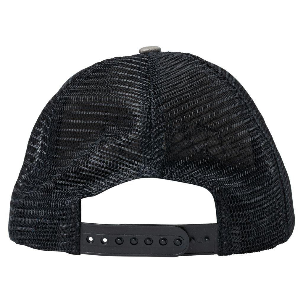 Low profile unstructured 6 panel cotton twill & mesh strapback hat with curved visor and embroidered logo.