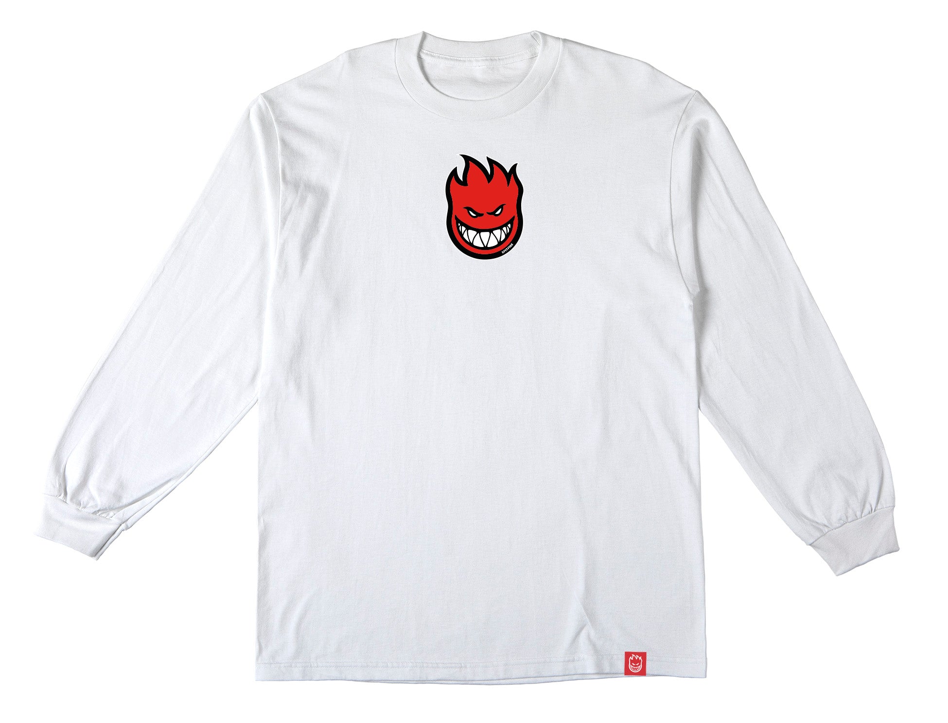 SPITFIRE BIGHEAD MID FILL L/S TEE WHITE w/ RED, WHITE & BLACK PRINT