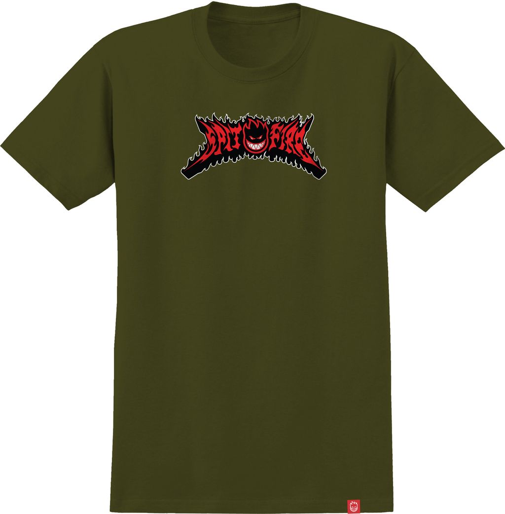 SPITFIRE FLAME OUT BIGHEAD FILL TEE MILITARY GREEN w/ RED, BLACK & WHITE PRINT